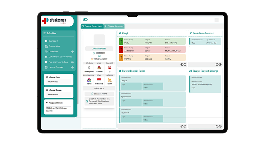 Dengan fitur keamanan data yang kuat, integrasi BPJS dan SatuSehat, sistem ini memberdayakan puskesmas untuk memberikan pelayanan yang unggul kepada pasien.